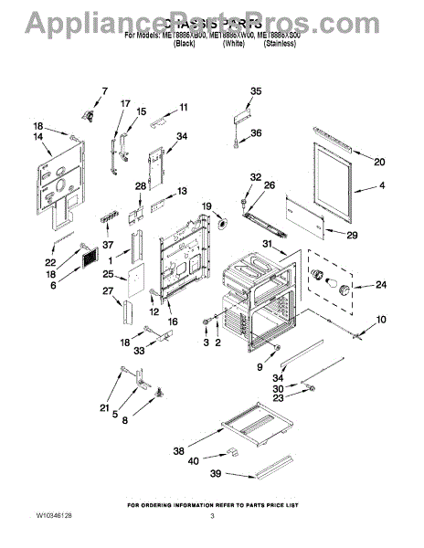 Replacement side panel assembly for gas ranges and ovens. Restores exterior appearance when original panel is cracked, dented, rusted, or bent. Mounts to frame.