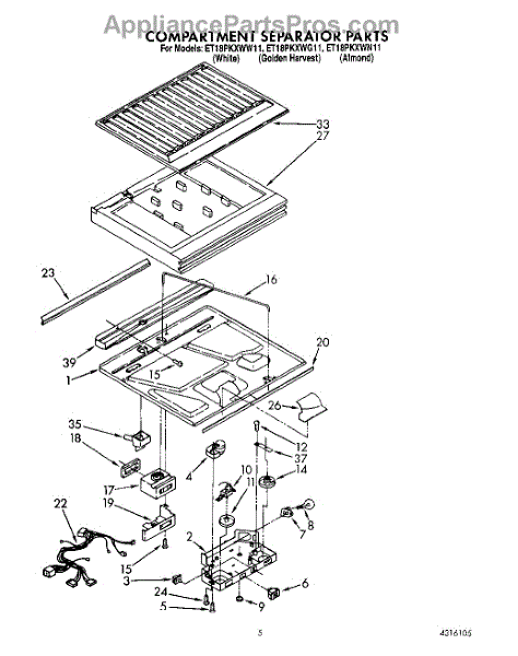 Parts for Whirlpool ET18PKXWG11: 03 - Compartment Separator Parts