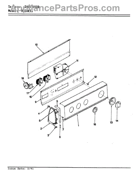 Parts for Admiral AW20K3HS: 03 - Control Panel Parts