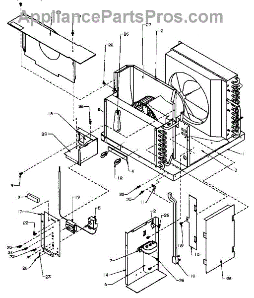 Hex head sheet metal screw secures appliance panels, brackets, and trim. Replace missing, stripped, or damaged screws to keep covers firmly attached.