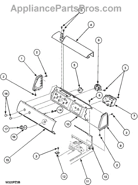 This factory screw secures appliance components to their mounting points. Replace missing, worn, or stripped hardware to restore a tight fit, proper alignment, and quieter operation across the affected assembly.