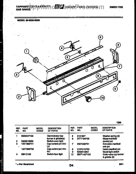 Parts for Frigidaire 36-6262-23-09: 03 - Control Panel Parts