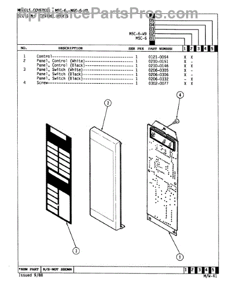Parts for Magic Chef M5C-1C: 03 - Control Panel (M5c-6,M5c-6-W9) Parts