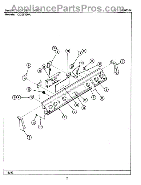 Parts for Maytag CDE8520ACB: 03 - Control Panel Parts