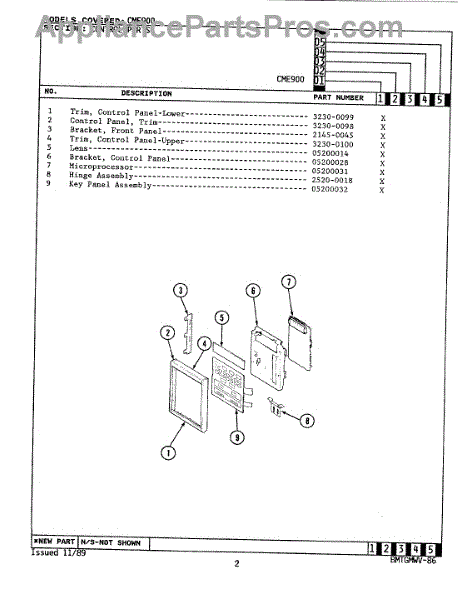 Parts for Maytag CME900: 03 - Control Panel Parts