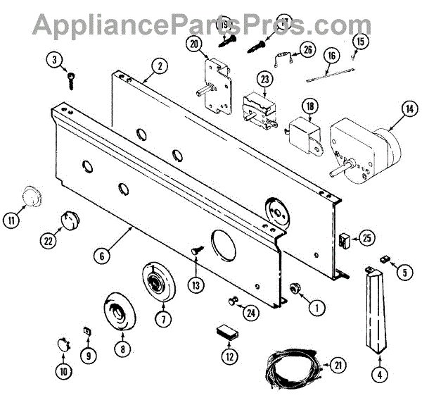 This timer controls a specific timed function in the appliance so cycles start, advance, and finish when they should. Replacing a worn timer can restore consistent operation and help prevent incomplete or stalled cycles.