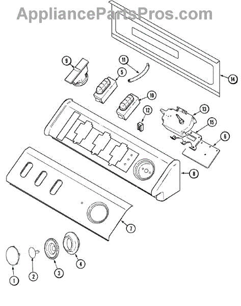 This washer timer controls and advances the cycle, sending power to the valve, motor, and pump at the right times. Replace it if the cycle stalls, won't start, or never completes.