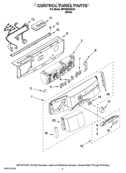 Parts for Maytag MFW9600SQ0: 03 - Control Panel Parts