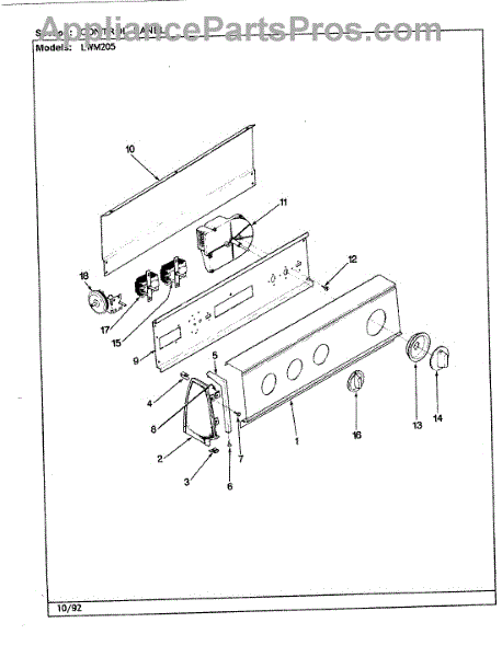 Parts for Norge LWM205W: 03 - Control Panel (Rev. A-E) Parts