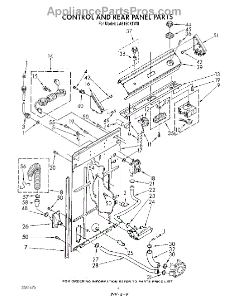 Parts for Whirlpool LA6150XTF0: 03 - Control And Rear Panel Parts