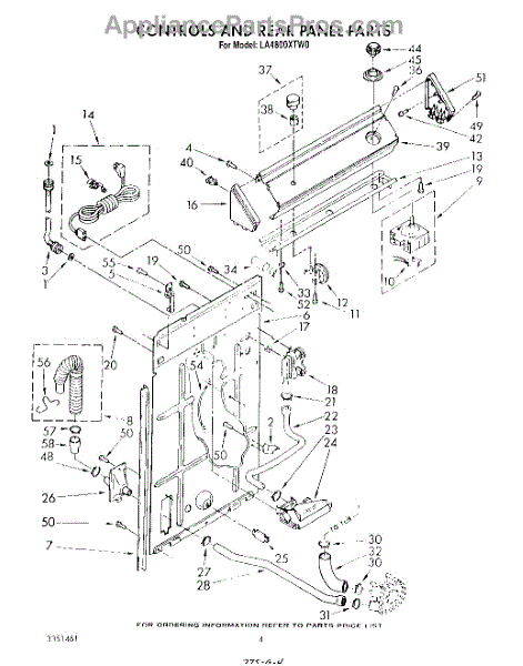 Parts for Whirlpool LA4800XTW0: 03 - Controls And Rear Panel Parts