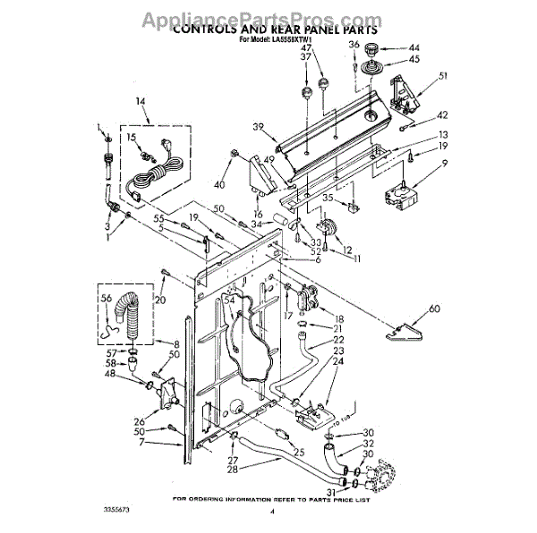 Parts for Whirlpool LA5558XTG1: 03 - Controls And Rear Panel Parts