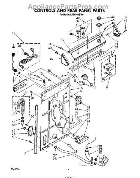 Parts for Whirlpool LA5600XSW0: 03 - Controls And Rear Panel Parts