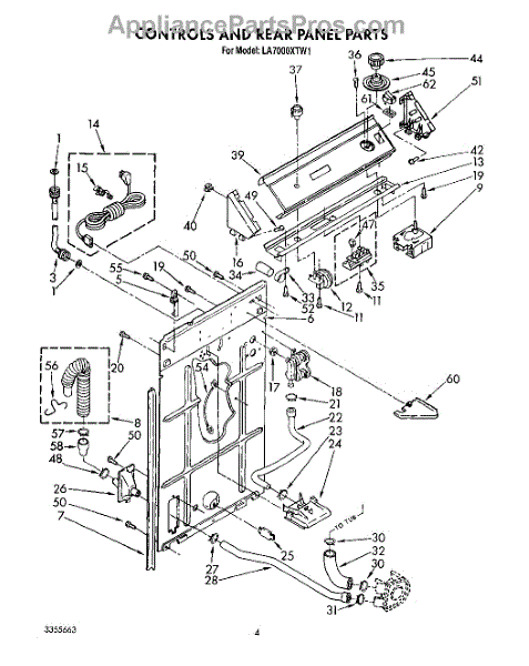 Parts for Whirlpool LA7000XTM1: 03 - Controls And Rear Panel Parts