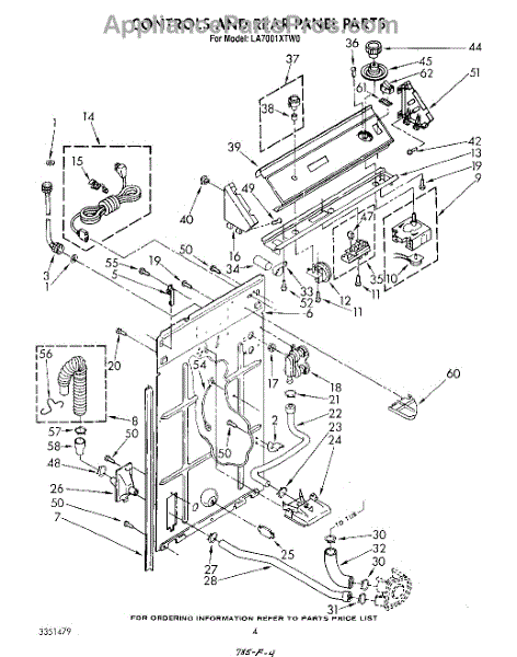 Parts for Whirlpool LA7001XTW0: 03 - Controls And Rear Panel Parts
