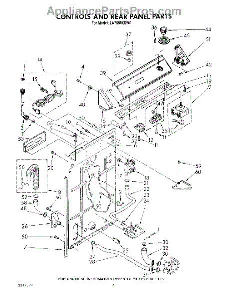 Parts for Whirlpool LA7680XSW0: 03 - Controls And Rear Panel Parts