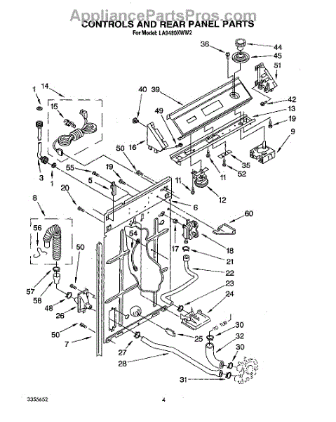 Parts for Whirlpool LA9480XWF2: 03 - Controls And Rear Panel Parts