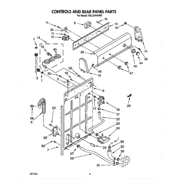 This rear panel support is the structural bracket that secures the appliance's rear cover/backguard in place. Replacing a worn or broken support restores proper alignment, helps protect internal components, and reduces vibration noise.