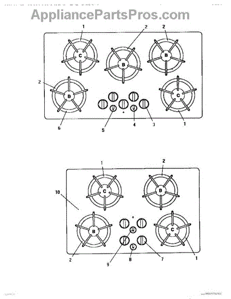 Parts for Thermador GGNCV30W: 03 - Cooktop Parts