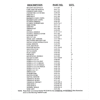 Includes griddle, 2 handles and instruction sheet.