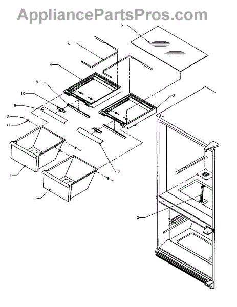 White plastic support post that holds up the crisper drawer cover in your refrigerator. Replace if broken, missing, or lost during moving to prevent sagging.