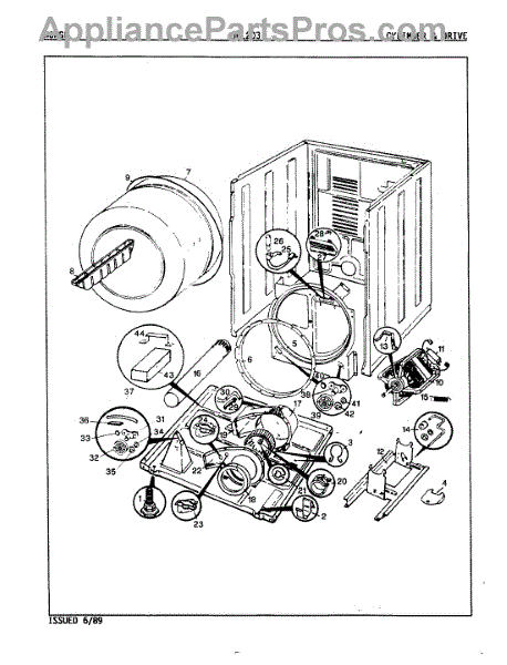 This replacement idler pulley keeps the drive belt tight and tracking correctly so the drum can rotate smoothly. It restores quiet, consistent operation when the original pulley is worn or seized and causing belt slippage or noise.