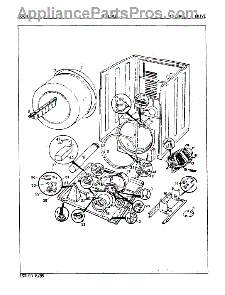 This replacement idler pulley keeps the drive belt tight and tracking correctly so the drum can rotate smoothly. It restores quiet, consistent operation when the original pulley is worn or seized and causing belt slippage or noise.