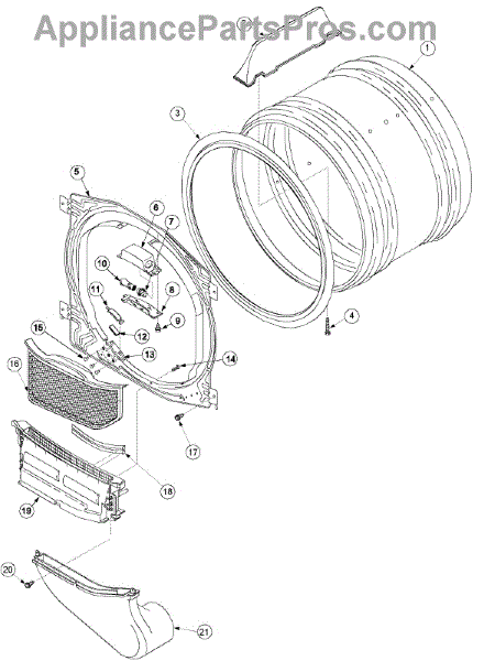 The Dryer Glide Felt Pad is an OEM part for Whirlpool dryers. It is located at the front of the dryer drum. It provides a smooth surface for the drum to glide on, reducing friction and allowing it to rotate freely. This helps to prevent excessive wear and noise during the drying cycle.