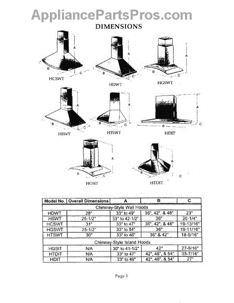 Parts for Thermador HDI54TS: 03 - Dimensions Parts
