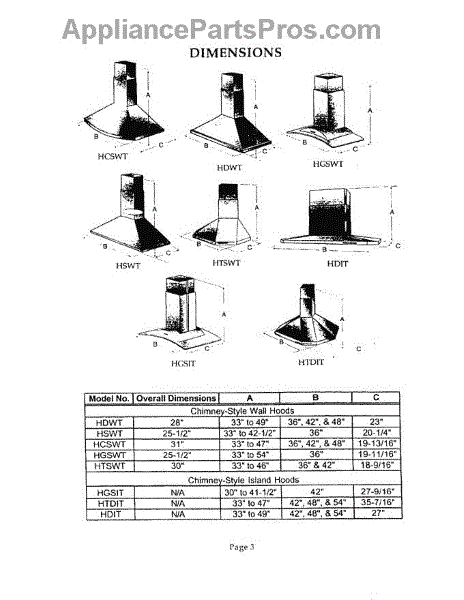 Parts for Thermador HTDI54TS: 03 - Dimensions Parts