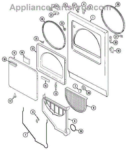The Door Catch Kit is an OEM part for Whirlpool dryers. It includes the door catch and the necessary mounting hardware to secure it in place. This kit ensures the dryer door remains securely closed during operation, preventing heat loss and ensuring the appliance functions efficiently.