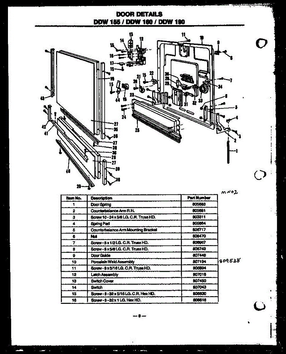 Parts for Amana DDW160/MN04: 03 - Door Details Parts