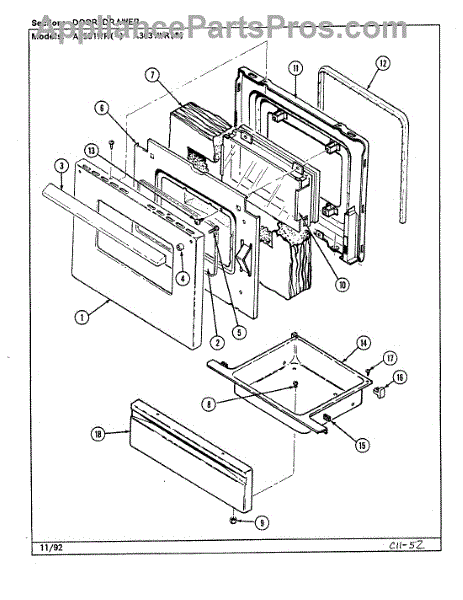 Parts for Admiral A3531WRW: 03 - Door / Drawer (A3531wr) Parts