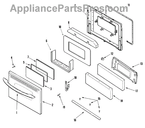 The Oven Door Panel Screw is an OEM replacement part for Whirlpool ovens and ranges. It is a component used to fasten the outer panel to the interior metal door frame.