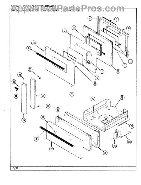 This factory fastener secures panels, trim, or brackets on your appliance. Replacing a missing or stripped screw restores a snug, rattle-free fit and keeps components aligned for proper operation and a clean, finished appearance.