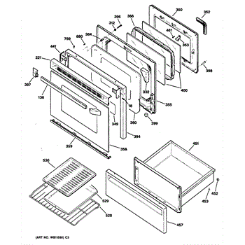 The Bottom Door Trim (BLK) is an OEM part for GE ranges. This black trim piece is located at the bottom of the oven door, providing a finished look while also protecting the door's edge from damage and wear.