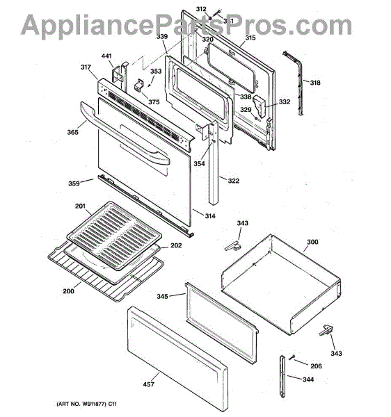 The Bottom Door Trim is an OEM part for GE ranges. It serves as a finishing touch, providing a seamless transition between the bottom of the oven door and the base or kick plate area.