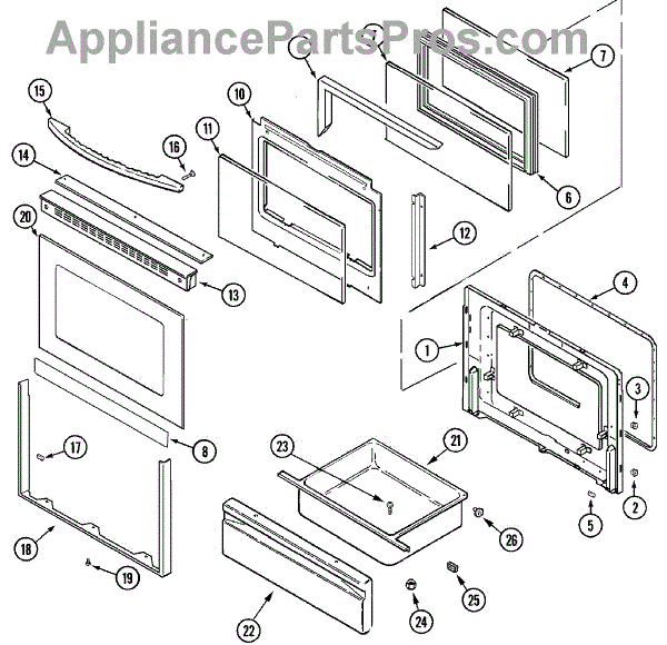 Size: 20 5/8 inches x 13 1/8 inches. For the glass measuring 22 3/8 inches x 14 inches order 74004857 Causes of a bad oven inner door glass can include small cracks or chips developing from regular door openings/closings, or microscopic defects that enlarge under repeated thermal cycling. Damage from accidental impacts is also possible. Symptoms of a bad Oven Inner Door Glass include: