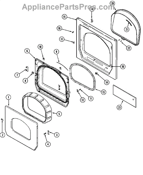 This door seal fits around the dryer door opening to keep heat and moisture inside the drum. Replacing a worn seal restores airflow, improves drying performance, and helps prevent lint and warm air from escaping around the door.