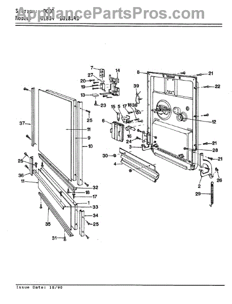 This factory screw secures appliance components to their mounting points. Replace missing, worn, or stripped hardware to restore a tight fit, proper alignment, and quieter operation across the affected assembly.