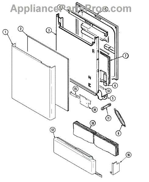 The Door Spring is an OEM part for Whirlpool dishwashers. This part allows the smooth and controlled operation of the dishwasher door. The spring helps balance the weight of the door, allowing it to open and close effortlessly without slamming shut. Causes of a bad door spring can include wear and tear from repeated use, corrosion or rust, and breakage due to excessive force or mishandling. Symptoms of a bad door spring include: