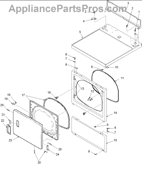 Replacement door hinge for dryers. Connects the door to the cabinet frame. Order when hinge is cracked, broken, or causing door misalignment.