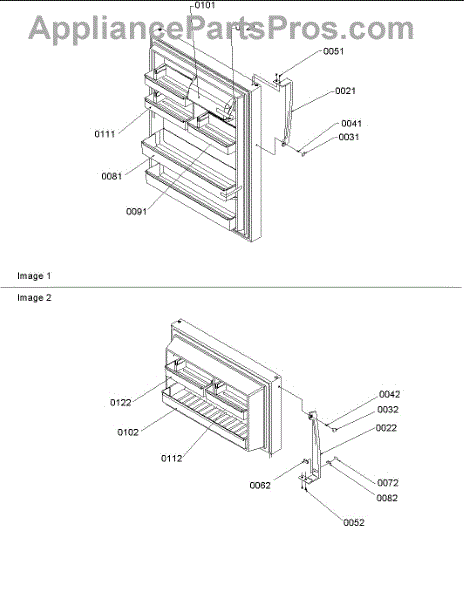 Parts for Amana TX19V2E / P1306303W E: 03 - Door Handles And Shelves Parts