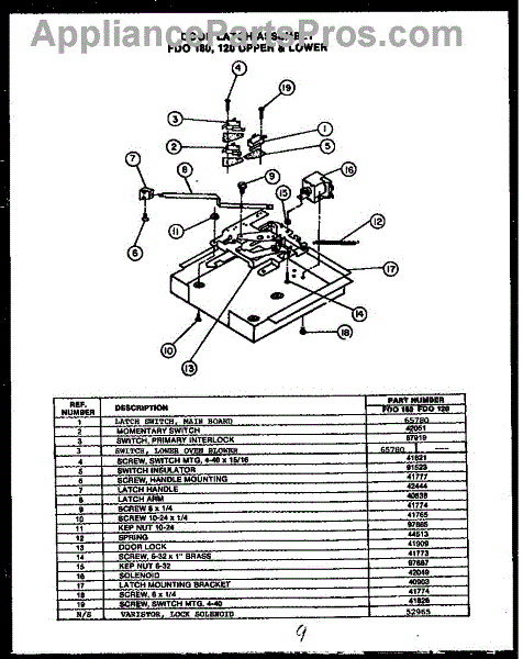 Parts for Amana FDO120: 03 - Door Latch Assy Fdo 180 Parts