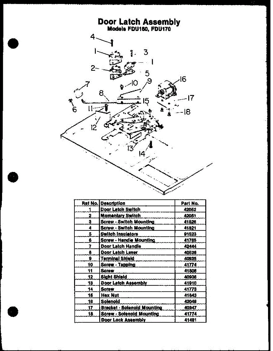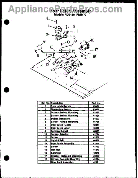 Parts for Amana FDU170: 03 - Door Latch Assy Parts