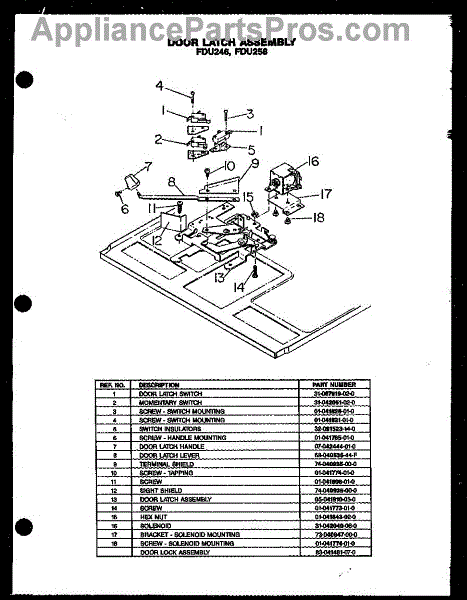 Parts for Amana FDU258: 03 - Door Latch Assy Parts