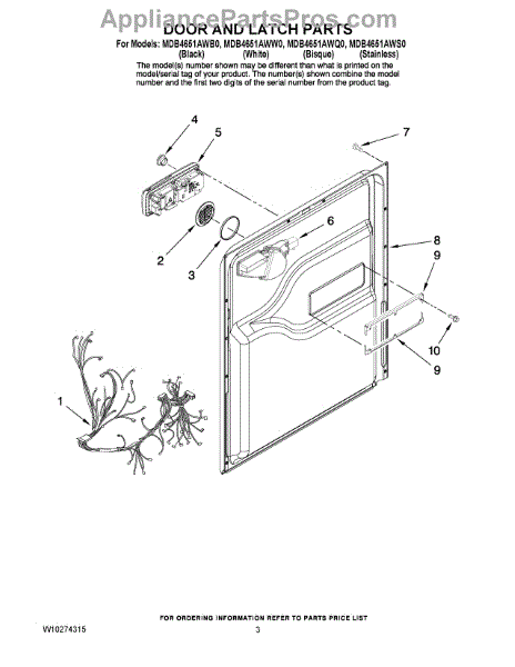 Parts for Maytag MDB4651AWS0: 03 - Door And Latch Parts