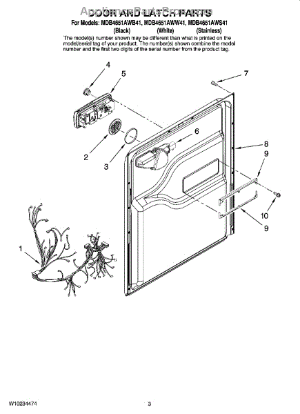 Parts for Maytag MDB4651AWW41: 03 - Door And Latch Parts