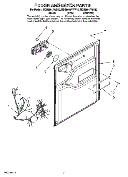 Parts for Maytag MDB5601AWB40: 03 - Door And Latch Parts