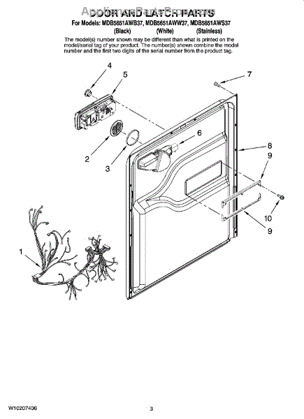 Parts for Maytag MDB5651AWB37: 03 - Door And Latch Parts
